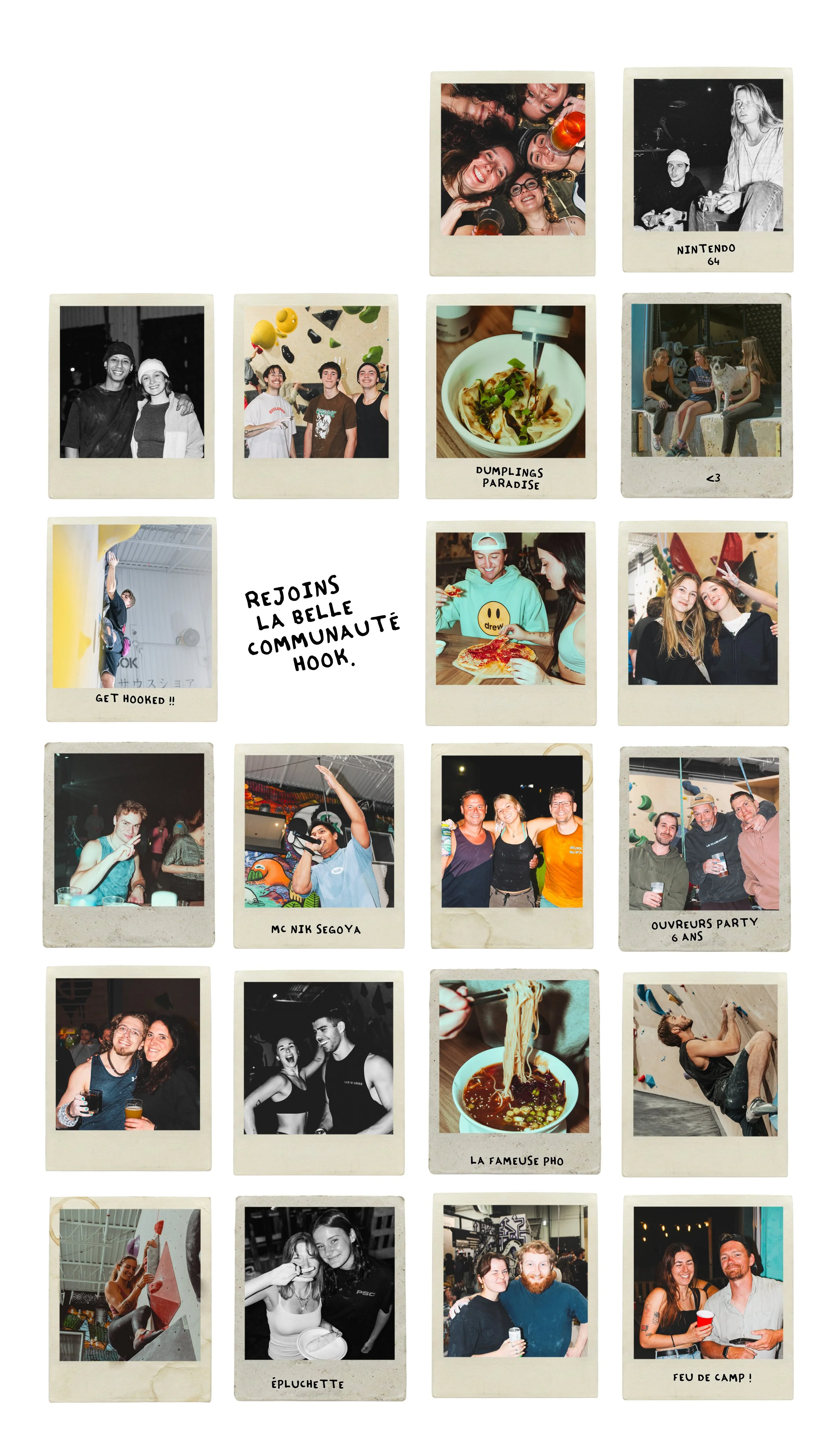 Depuis février 2020, situé à Sainte-Julie, Hook permet à la communauté d’escalade de la Rive-Sud de Montréal de pratiquer le bloc intérieur. Le centre donne aux grimpeurs débutants comme avancés l'opportunité d'explorer des problèmes de qualité dans une ambiance conviviale et chaleureuse.